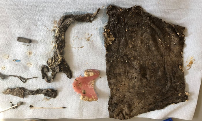 | False teeth among the things found in the fatberg. Photograph: University of Exeter/PA |