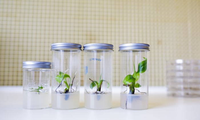 | Researchers from Tropic Biosciences are working to create more resilient bananas. Photograph: Tatum Reid/Tropic Biosciences |